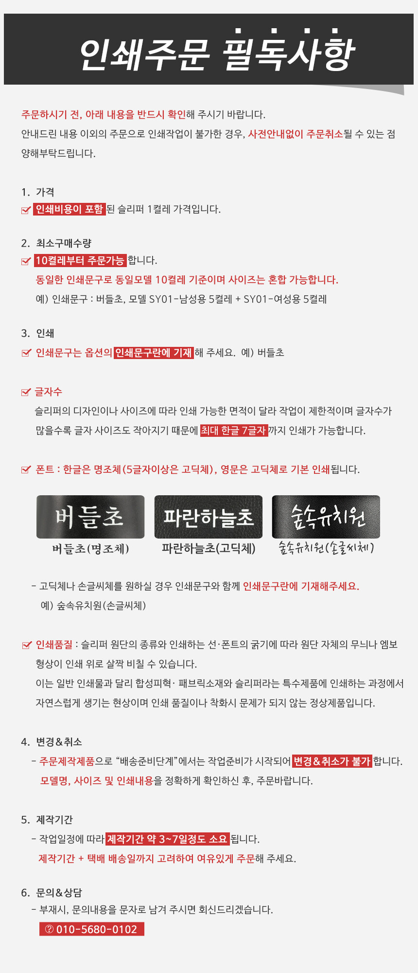 # 주문전, 필독사항을 반드시 확인해 주세요.